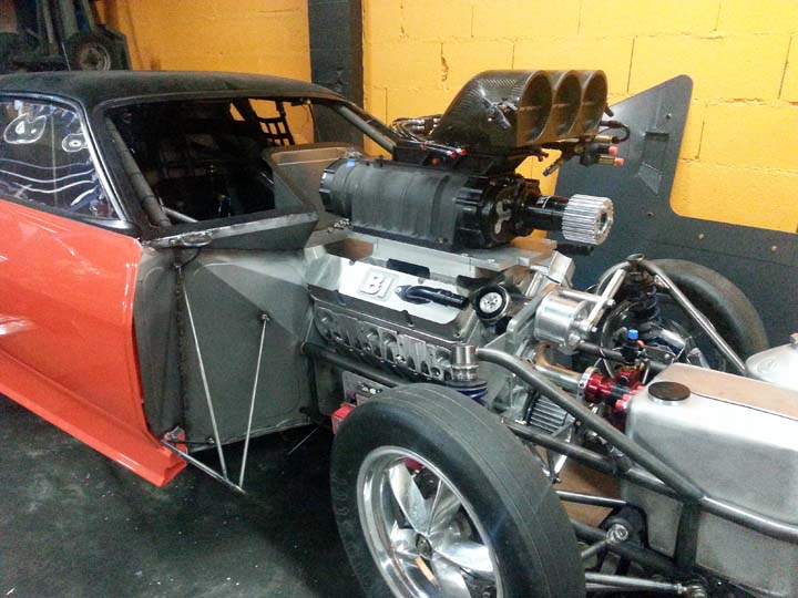 A progress picture from France of Eric Monsenego's B-1 powered Pro Mod Cuda.